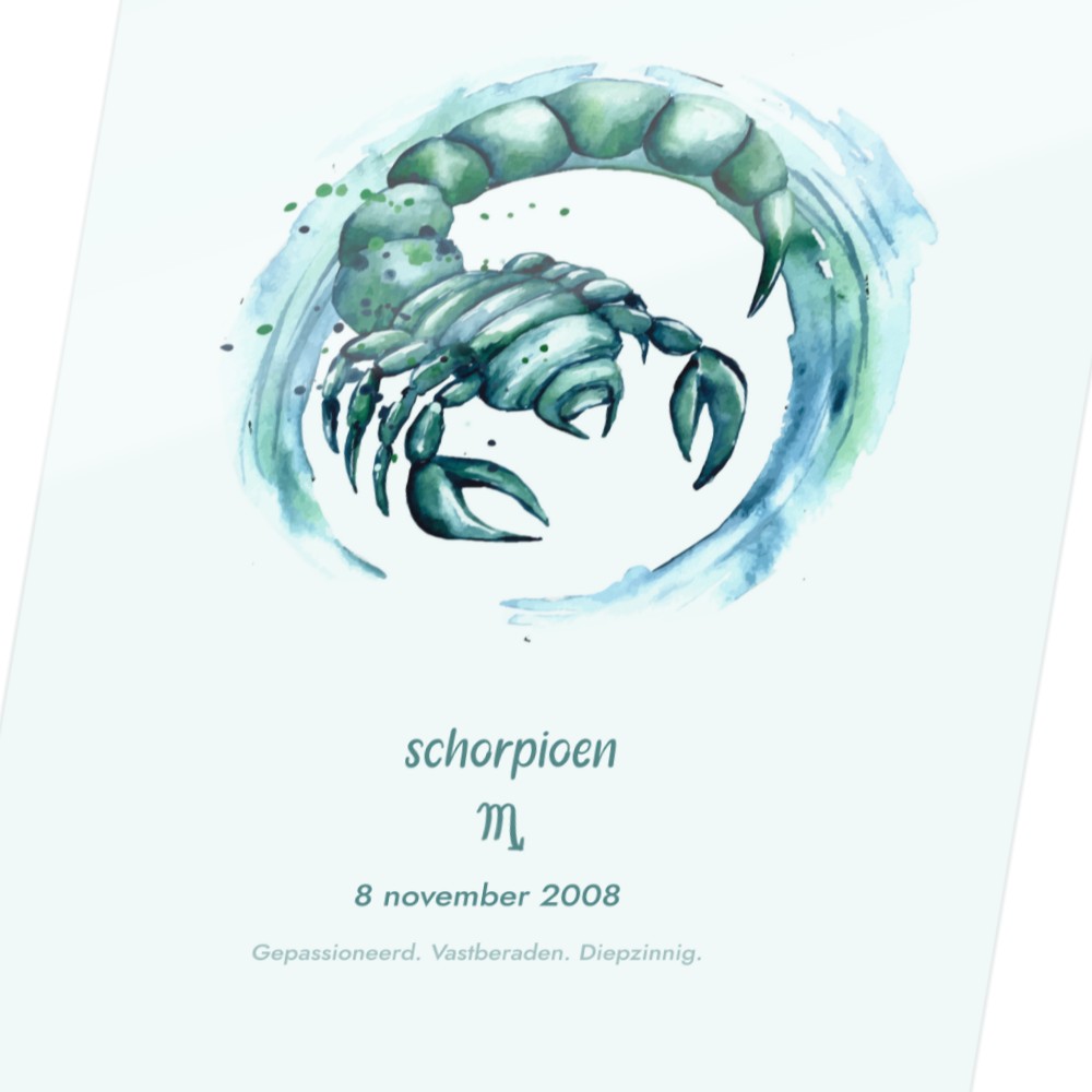 Deze elegante poster viert jouw sterrenbeeld met een artistieke waterverf-interpretatie van het bijbehorende symbool. Het ontwerp toont een prachtig geschilderde weergave van jouw sterrenbeeld, omringd door subtiele sterren en kosmische details. Onderaan vind je jouw sterrenbeeld-symbool en enkele karakteristieke eigenschappen die bij jouw teken horen. De zachte waterverf-texturen creëren een verfijnde, organische uitstraling die perfect past in moderne interieurs. Deze poster wordt volledig gepersonaliseerd voor jouw specifieke sterrenbeeld en geboortegegevens, waardoor elk exemplaar een uniek kunstwerk wordt dat jouw astrologische identiteit weergeeft. Het is een stijlvolle toevoeging aan jouw interieur en een buitengewoon persoonlijk cadeau-idee.