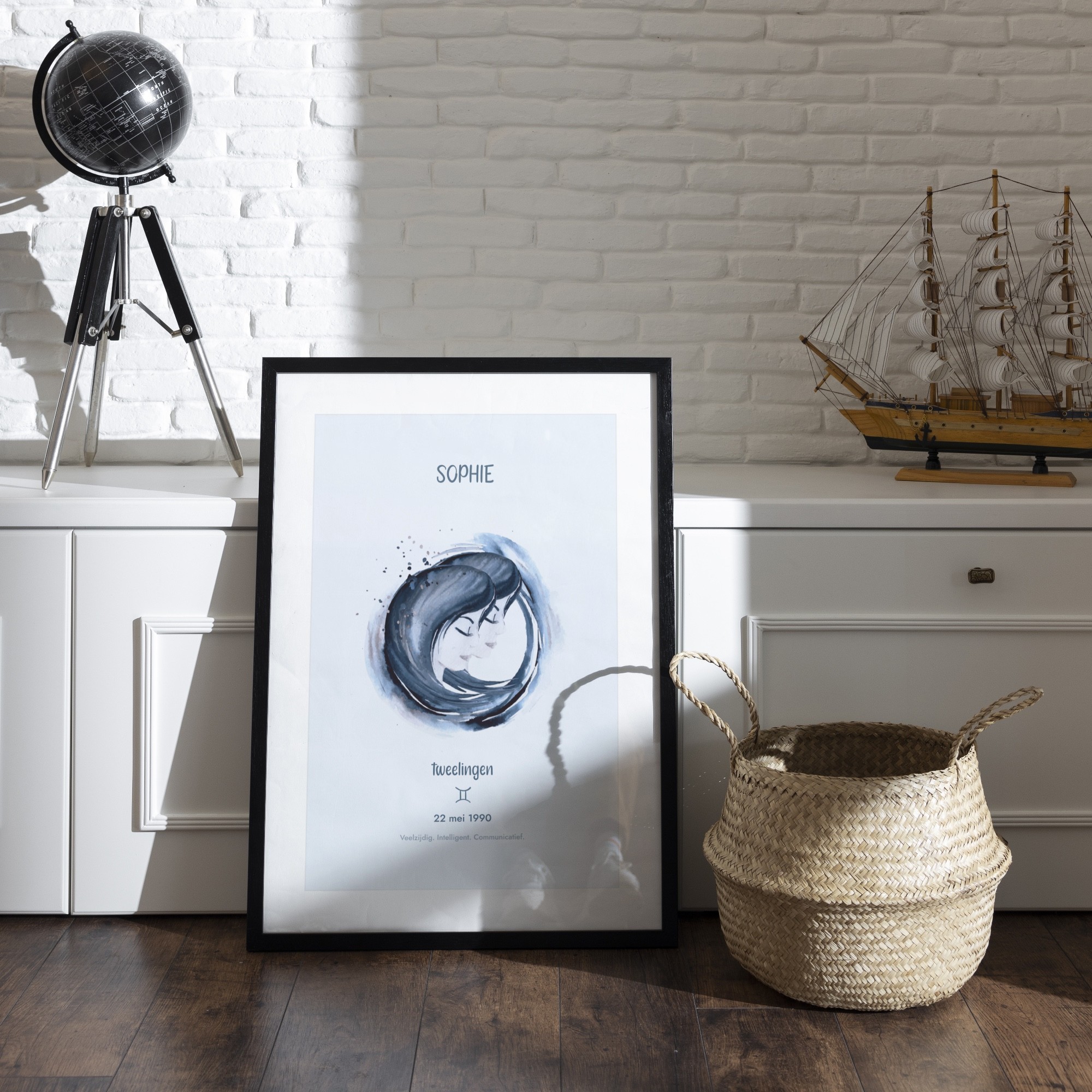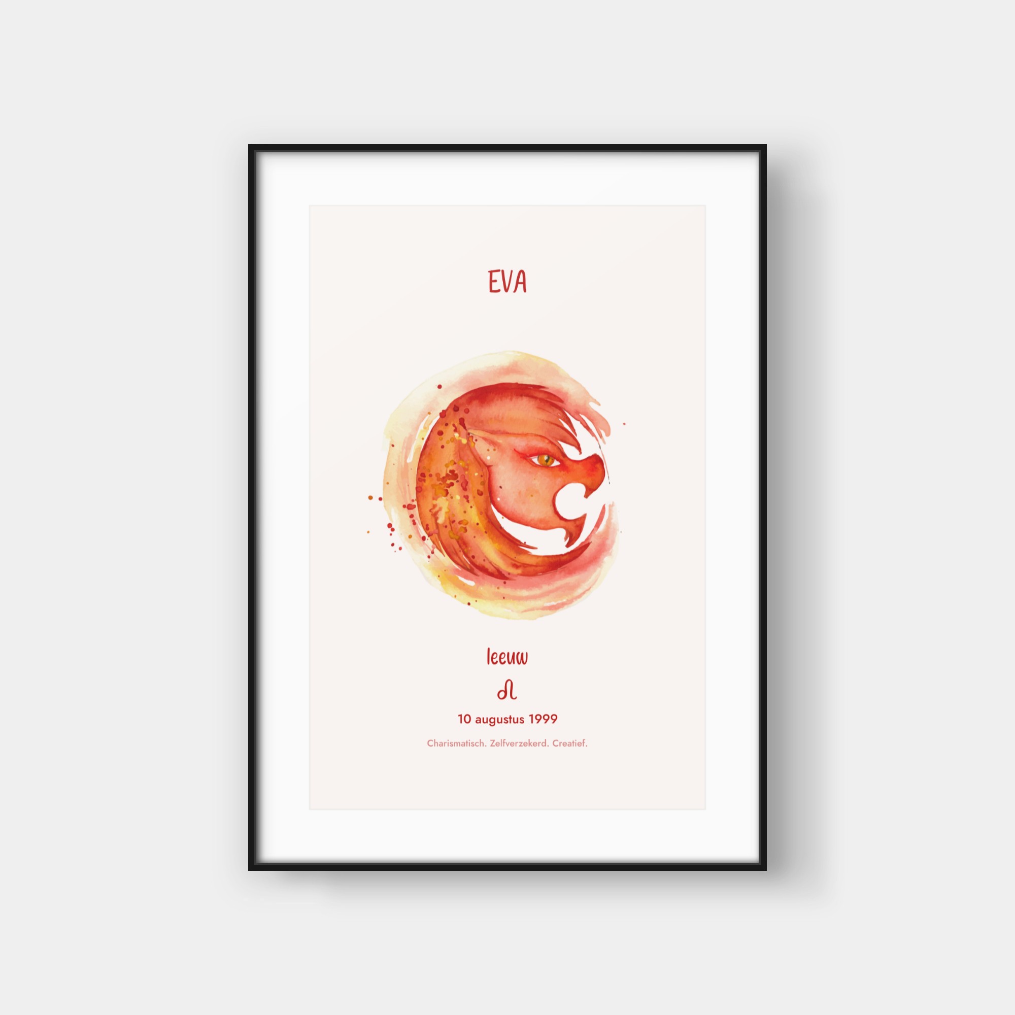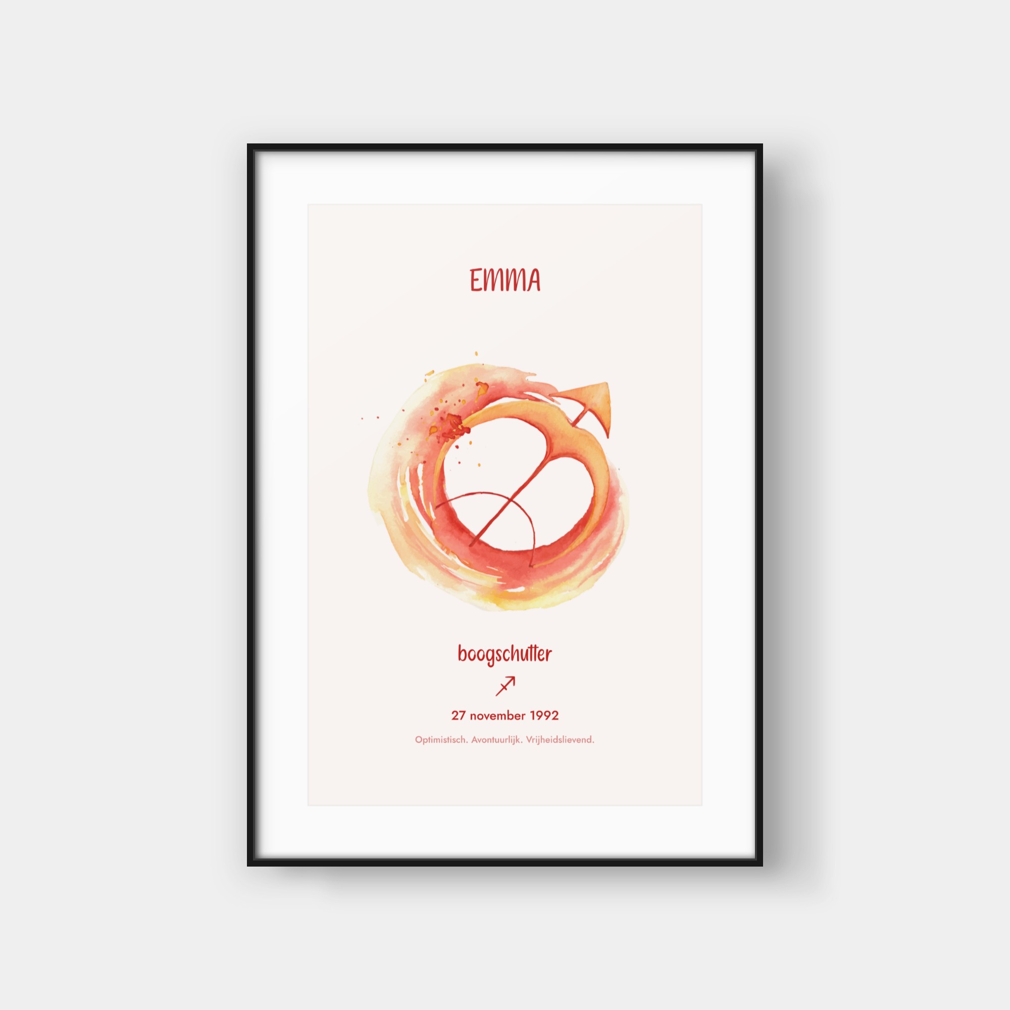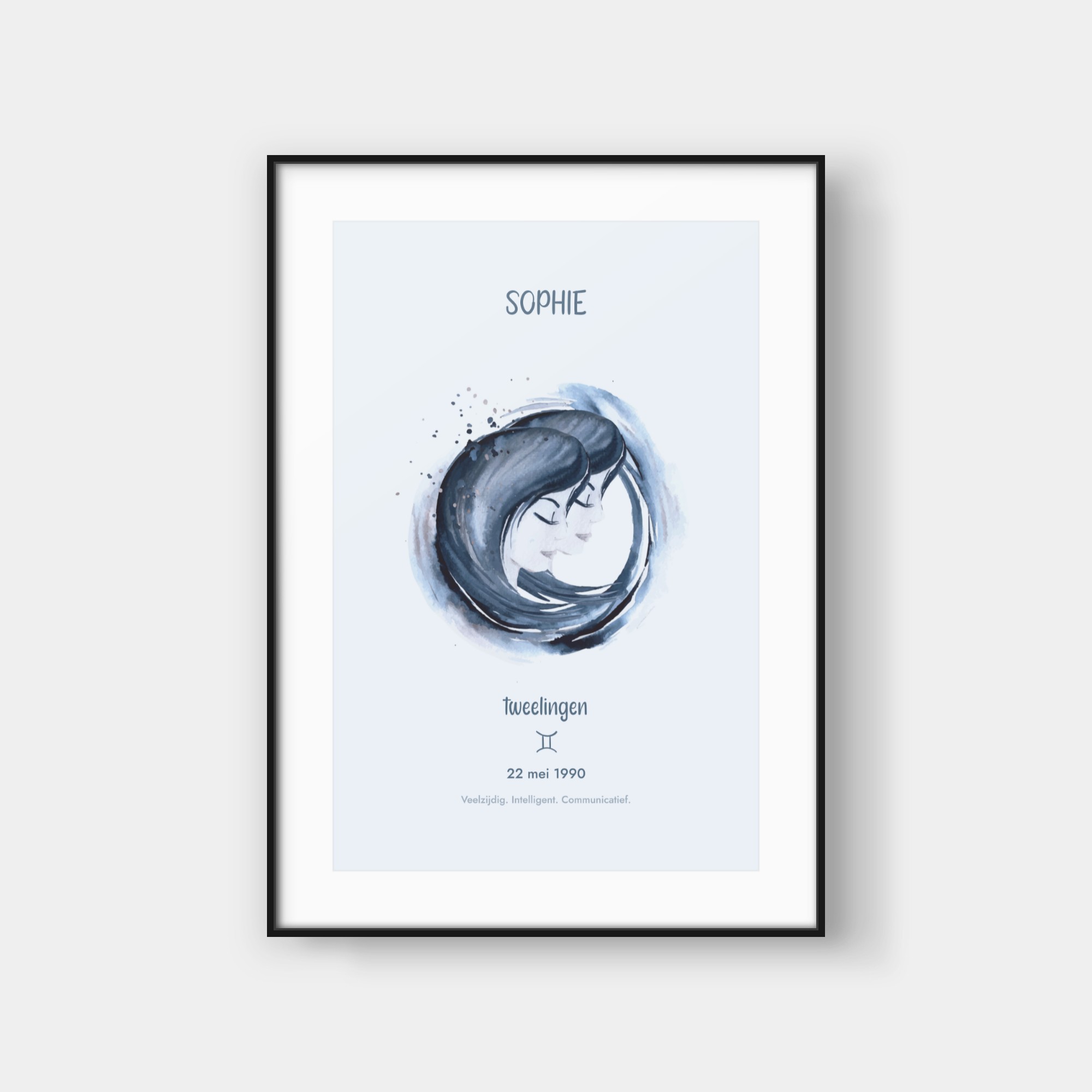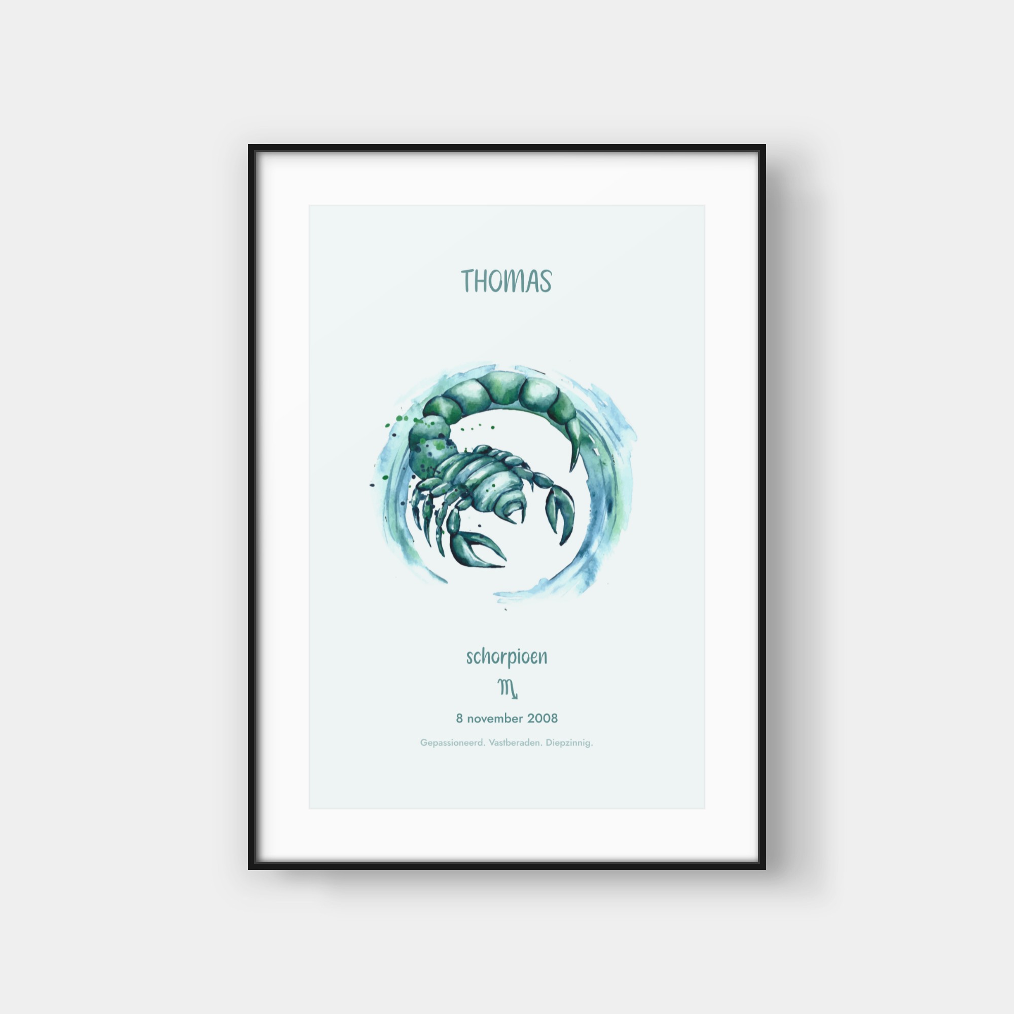 Deze elegante poster viert jouw sterrenbeeld met een artistieke waterverf-interpretatie van het bijbehorende symbool. Het ontwerp toont een prachtig geschilderde weergave van jouw sterrenbeeld, omringd door subtiele sterren en kosmische details. Onderaan vind je jouw sterrenbeeld-symbool en enkele karakteristieke eigenschappen die bij jouw teken horen. De zachte waterverf-texturen creëren een verfijnde, organische uitstraling die perfect past in moderne interieurs. Deze poster wordt volledig gepersonaliseerd voor jouw specifieke sterrenbeeld en geboortegegevens, waardoor elk exemplaar een uniek kunstwerk wordt dat jouw astrologische identiteit weergeeft. Het is een stijlvolle toevoeging aan jouw interieur en een buitengewoon persoonlijk cadeau-idee.