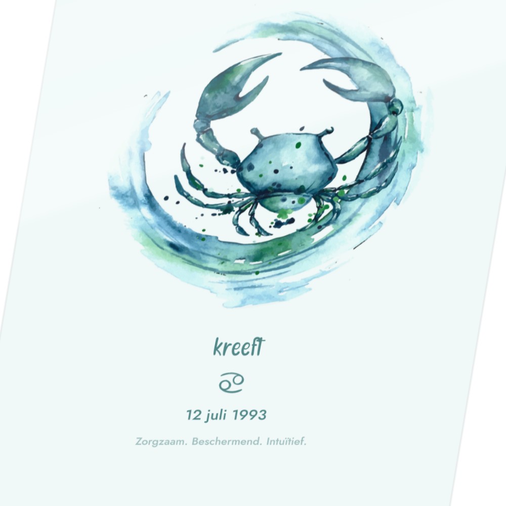 Deze elegante poster viert jouw sterrenbeeld met een artistieke waterverf-interpretatie van het bijbehorende symbool. Het ontwerp toont een prachtig geschilderde weergave van jouw sterrenbeeld, omringd door subtiele sterren en kosmische details. Onderaan vind je jouw sterrenbeeld-symbool en enkele karakteristieke eigenschappen die bij jouw teken horen. De zachte waterverf-texturen creëren een verfijnde, organische uitstraling die perfect past in moderne interieurs. Deze poster wordt volledig gepersonaliseerd voor jouw specifieke sterrenbeeld en geboortegegevens, waardoor elk exemplaar een uniek kunstwerk wordt dat jouw astrologische identiteit weergeeft. Het is een stijlvolle toevoeging aan jouw interieur en een buitengewoon persoonlijk cadeau-idee.