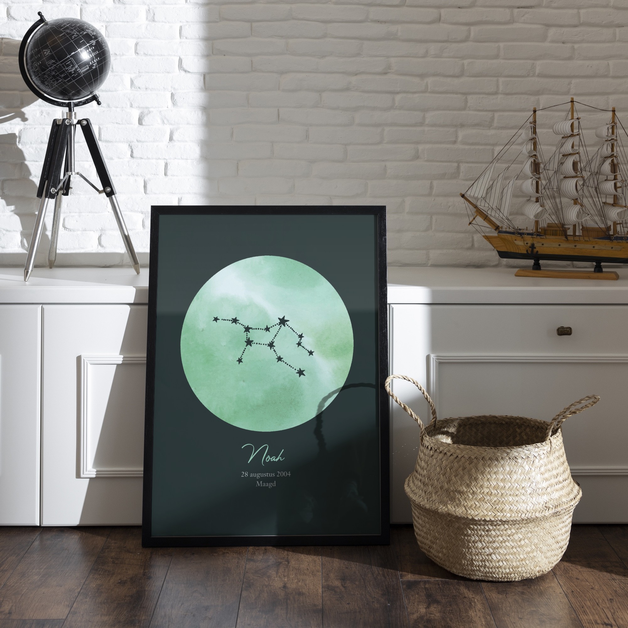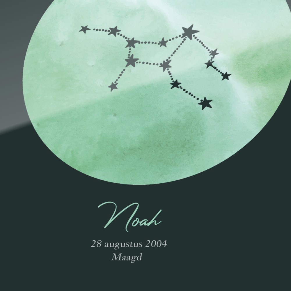 Deze astrologieposter toont jouw sterrenbeeld op een verfijnde en artistieke manier. Het ontwerp laat een sterrenconstellatie zien, weergegeven boven een zachte achtergrond die zorgt voor een tijdloze en moderne uitstraling. Door de minimalistische compositie komt de kracht van het sterrenbeeld duidelijk naar voren, terwijl het geheel een elegante en sfeervolle uitstraling behoudt. Je kunt de poster volledig personaliseren met jouw naam, geboortedatum en sterrenbeeld, waardoor het een uniek kunstwerk wordt dat echt bij jou past. Perfect als stijlvolle toevoeging aan je interieur of als persoonlijk cadeau voor iemand die je dierbaar is.